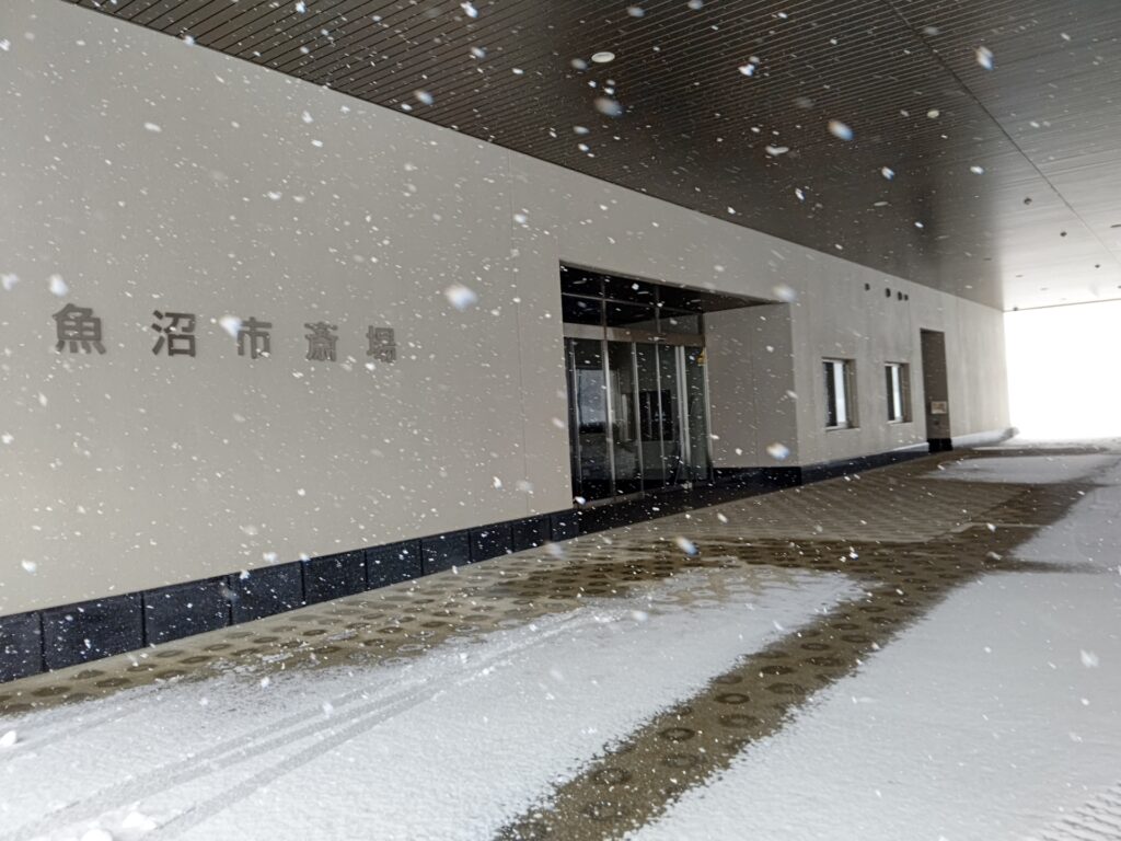 魚沼市斎場の周辺も雪が降り積もり、見渡せないほどの積雪がございます。